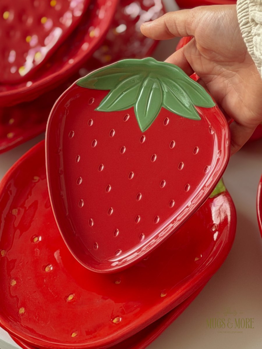 صحن تقديم مسطح بورسلان تصميم فراولة لون أحمر