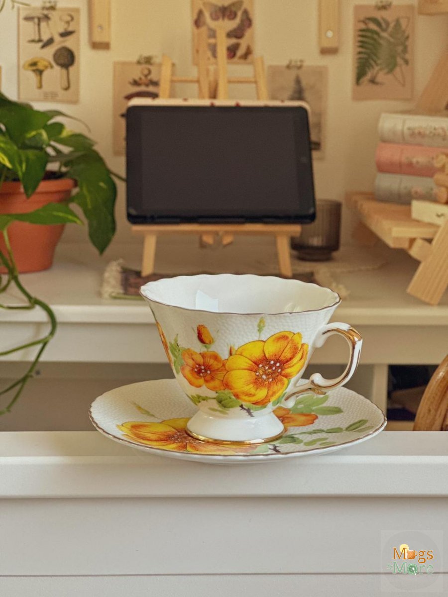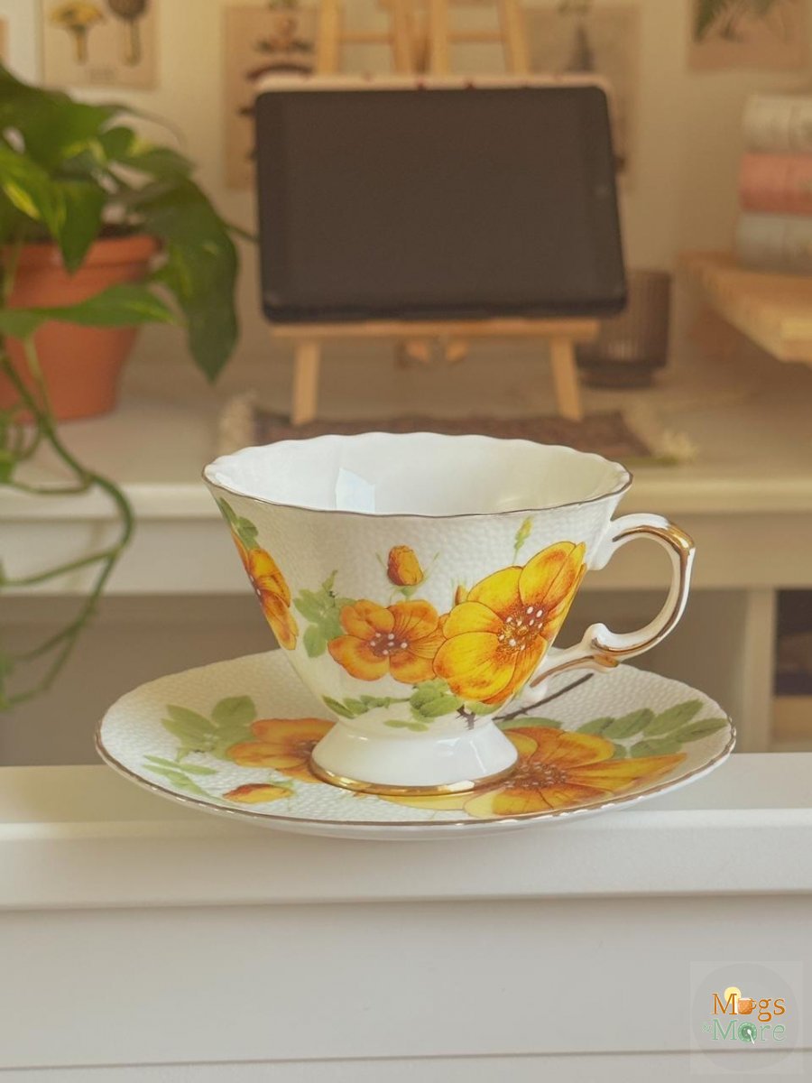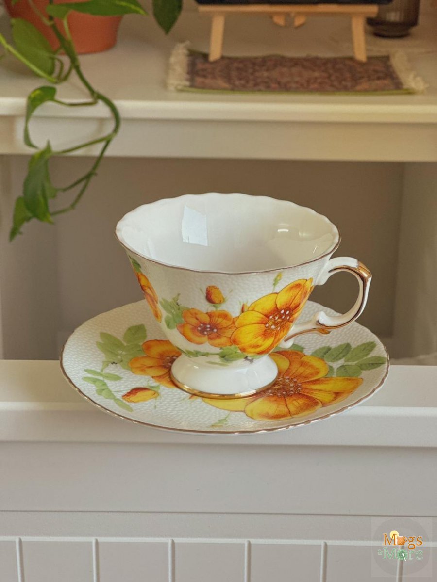 فنجان أنتيك وصحنه بورد أورنج وملمس مميز 200 مل